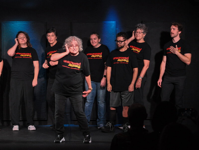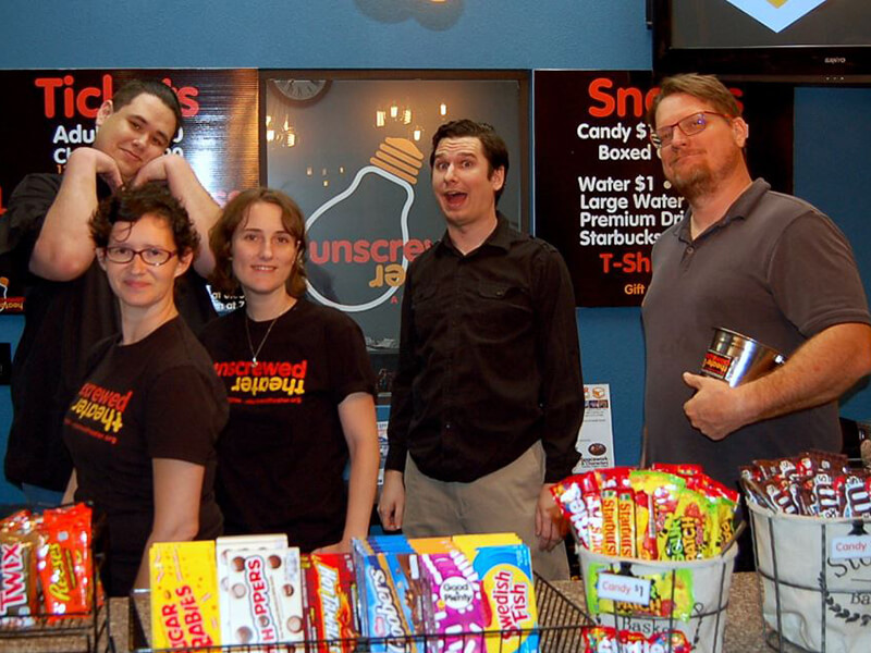 Unscrewed Theater is entirely volunteer-run. Our fabulous team of volunteers, performers, and administrators generously give their time, passion, and energy to the theater to bring you fun performances and enriching classes year-round.